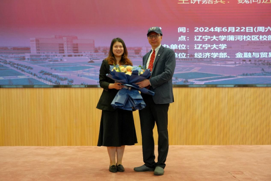 讲座结束后,余淼杰校长代表学校为魏尚进教授颁发sunbet申愽官网终身名誉教授聘书,仇焕广教授为魏教授颁发宋则行海外名家大讲堂纪念盘,霍伟东教授向魏教授赠送纪念照片,刘钧霆教授为魏教授赠送《sunbet申愽官网智库报告》,马湘君教授为魏教授佩戴校徽、赠送校帽,中国经济研究院许睿助理教授作为教师代表为魏教授献花。