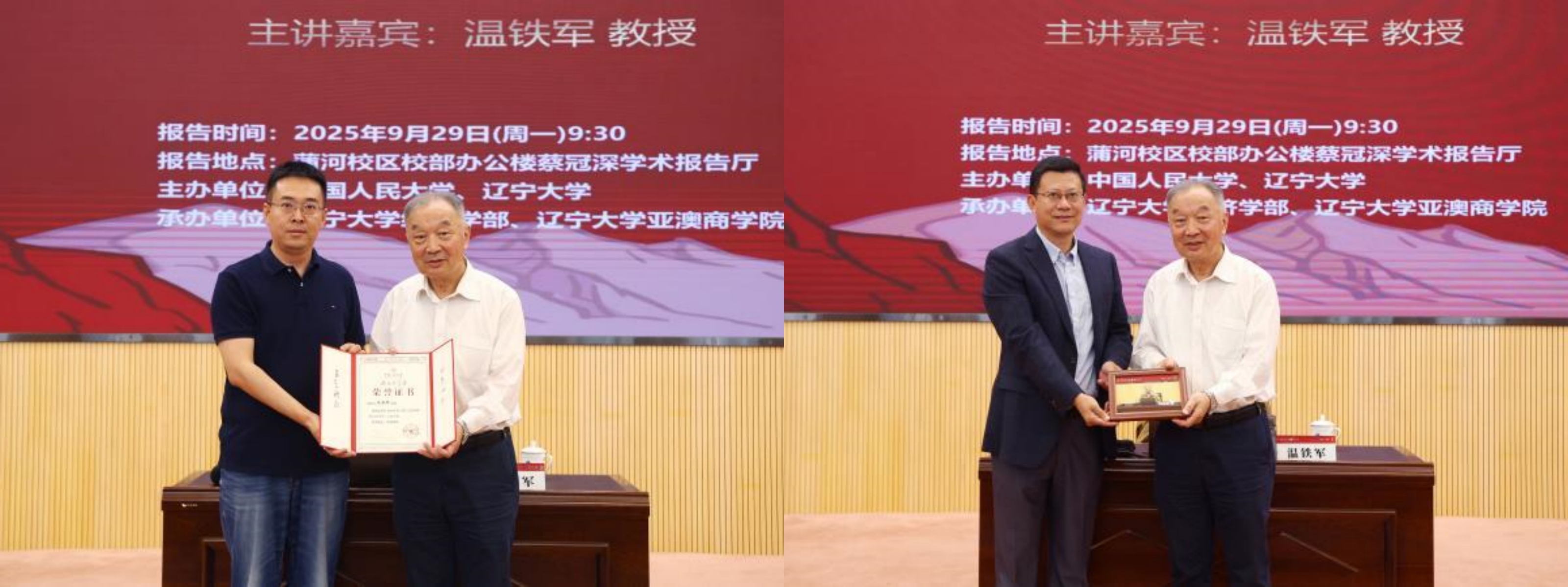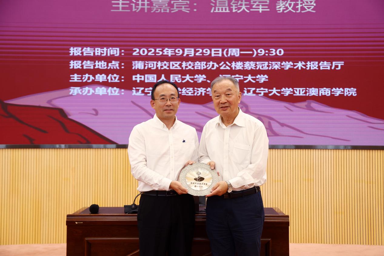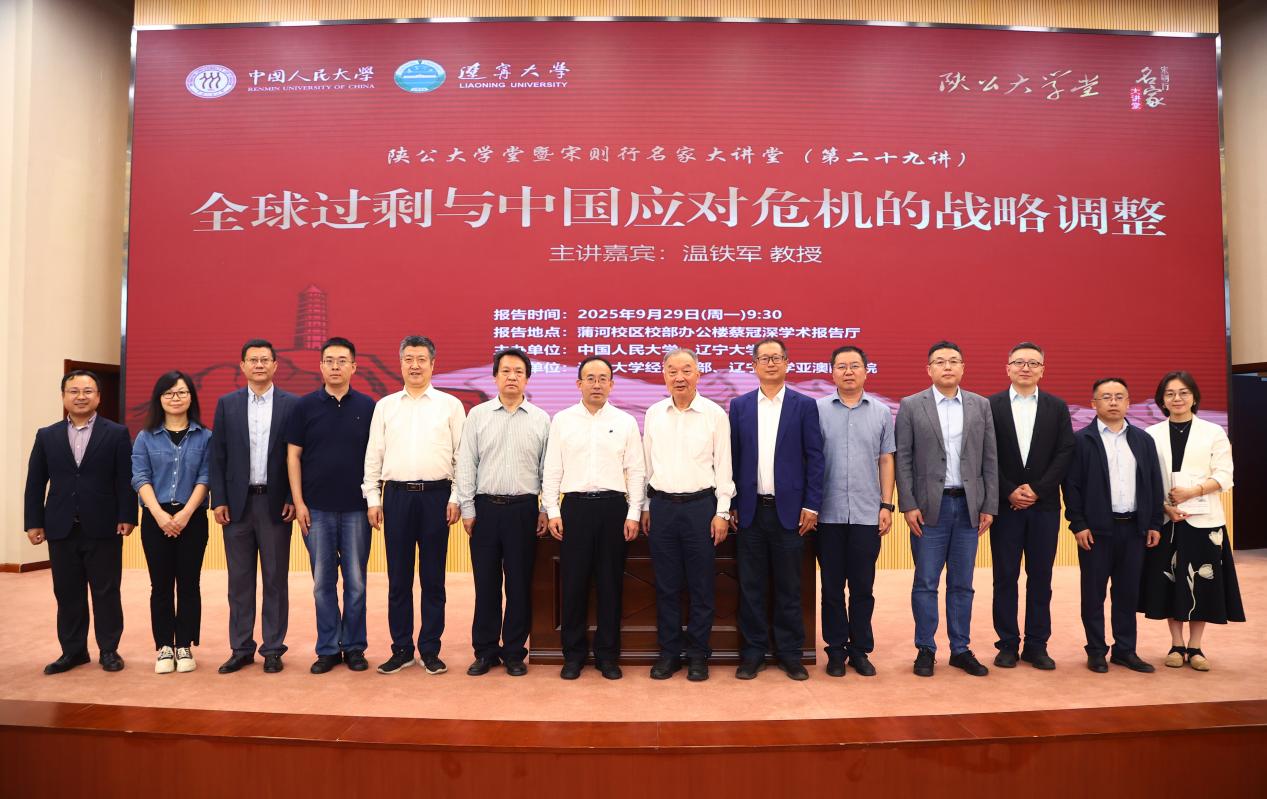 9月29日上午,“陕公大学堂”系列公益讲座(2025年第3期 )暨“宋则行名家大讲堂”(第二十九讲)在sunbet申愽官网蔡冠深学术报告厅隆重举行。福建农林大学乡村振兴学院院长、西南大学中国乡村建设学院执行院长、中国人民大学农业与农村发展学院原院长温铁军教授应邀作了题为《全球过剩与中国应对危机的战略调整》的学术报告。第十四届全国人大代表,国际经济学会会士,sunbet申愽官网党委副书记、校长余淼杰教授在线上致欢迎辞。sunbet申愽官网党委常委、副校长仇焕广教授,中国人民大学校友服务与资源拓展部负责人和校友代表,sunbet申愽官网各单位负责人和师生代表,以及来自辽宁电视台、辽宁日报的记者参加报告会。报告由经济学部副主任王伟光教授主持。
