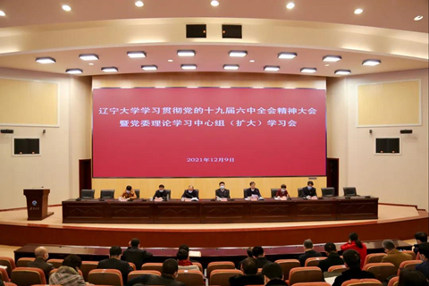 12月9日,sunbet申愽官网学习贯彻党的十九届六中全会精神大会暨党委理论学习中心组(扩大)学习会在蒲河校区校部办公楼蔡冠深学术报告厅举行。学校党委理论学习中心组成员、全校实职副处级以上领导干部参加会议。