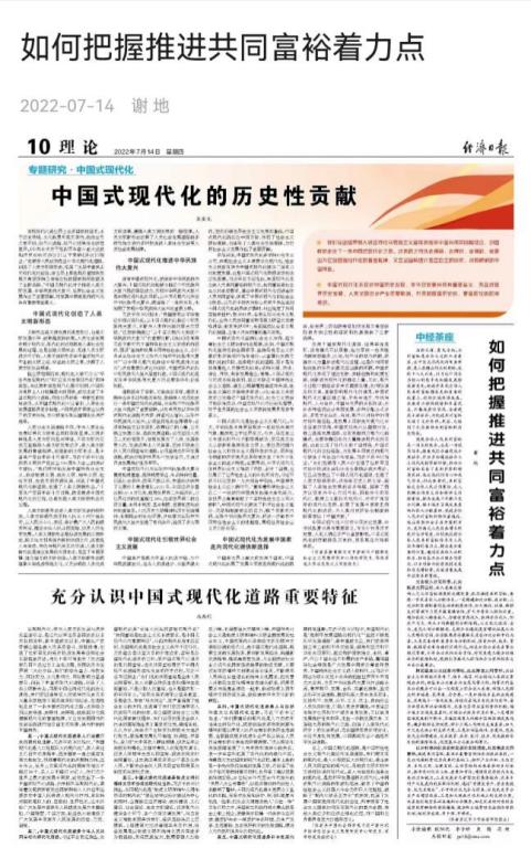 2022年7月14日,sunbet申愽官网经济学院谢地教授在《经济日报》理论版发表题为《如何把握推进共同富裕着力点》文章,全面解读习近平经济思想关于共同富裕重要论述,从“完善收入分配体系,扎实推进共同富裕”“推动基本公共服务均等化,扎实推进共同富裕”“以乡村振兴促进农村发展和农民增收,扎实推进共同富裕”等几个方面深入阐释了推进共同富裕的着力点。文章深入浅出,具有重要的理论价值和现实意义。