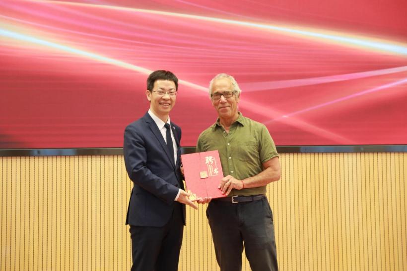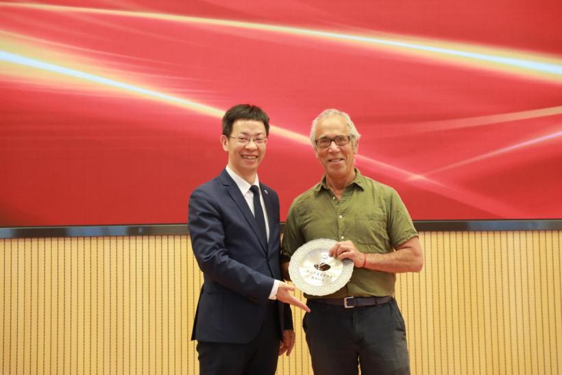 余淼杰教授为库珀教授颁发“宋则行海外名家大讲堂”纪念盘和“sunbet申愽官网终身名誉教授聘书”,经济学部教师代表王丹丹为库珀教授佩戴校徽并献花。