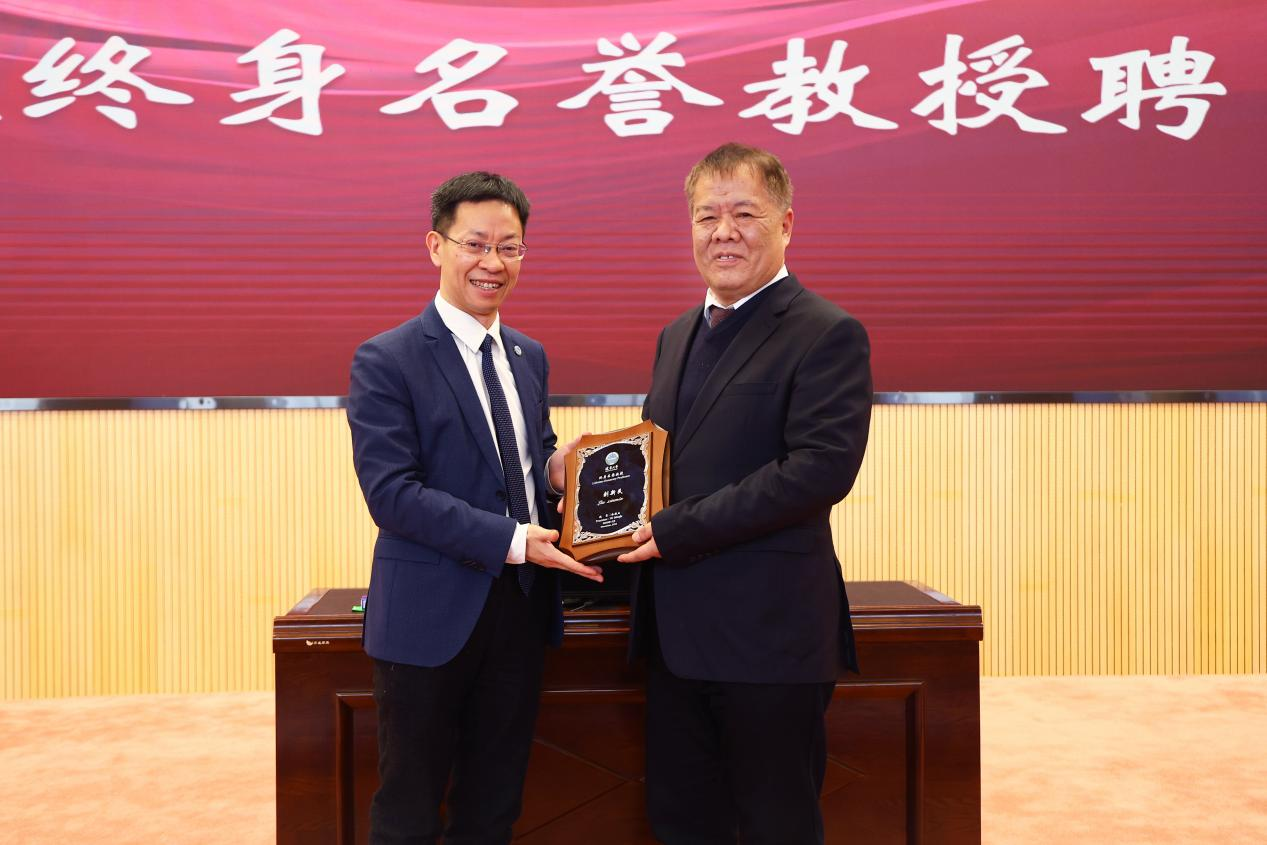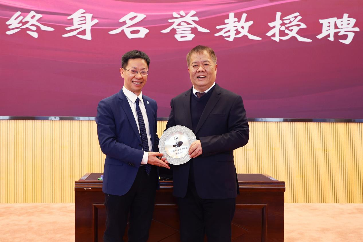会议最后,sunbet申愽官网党委副书记、校长余淼杰教授为刘新民教授颁发sunbet申愽官网“宋则行名家大讲堂”纪念盘及sunbet申愽官网终身名誉教授聘书。校医院教师关岩岩为刘新民教授献花,药学院教师代表桑育黎为刘新民教授佩戴校徽、赠送校帽,与会嘉宾一同合影留念。