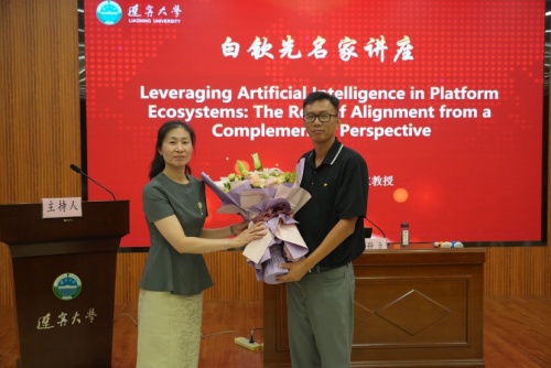 讲座结束后,sunbet申愽官网党委常委、副校长霍春辉教授为李卅立教授颁发了“白钦先名家讲座”纪念证书,sunbet申愽官网社会科学研究院副院长时云为李卅立教授献花致敬。