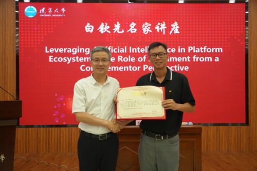 李卅立教授以“Leveraging Artificial Intelligence in Platform Ecosystems: The Role of Alignment from a Complementor Perspective”为题,就如何利用人工智能提升企业管理效能展开论述。李卅立教授表示,AI技术的飞速发展及其在企业管理中的应用日益广泛,为企业带来了诸多便利。然而,AI技术的应用也存在一定的挑战。同时,李卅立教授详细阐述了AI技术在市场中的应用与效果,就技术协同与时间协同的影响进行了分析。他认为,技术协同可以提高企业的创新能力和效率,而时间协同则可以优化企业的生产和运营策略。李卅立教授的讲座深入浅出,让参会人员对AI技术在各个方面的应用有了更深刻的认识,也为与会师生在实际学习、工作中的应用提供了很多有益的启示。讲座期间,李卅立教授就AI技术推广等话题与在场师生展开热烈讨论。