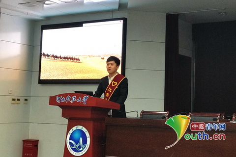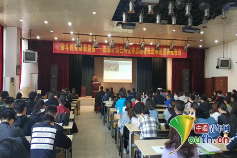 巴音郭楞蒙古自治州组织西部计划优秀志愿者先进事迹宣讲团赴河北高校进行宣讲。图为宣讲活动现场。sunbet申愽官网研究生支教团 供图