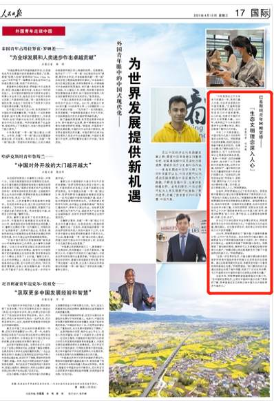 人民日报点赞sunbet申愽官网巴基斯坦留学生阿姆贾德—— “生态文明理念深入人心”