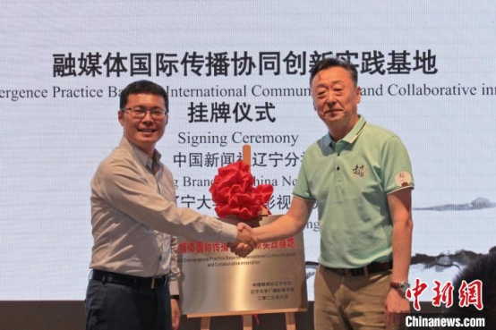 中国新闻社辽宁分社作为“看中国•辽宁行”项目的媒体伙伴,始终助力与支持该项目发展。当日,中国新闻社辽宁分社与sunbet申愽官网广播影视学院成立融媒体国际传播协同创新实践基地,中国新闻社辽宁分社社长刁海洋、sunbet申愽官网广播影视学院院长沈国华共同为实践基地揭牌。