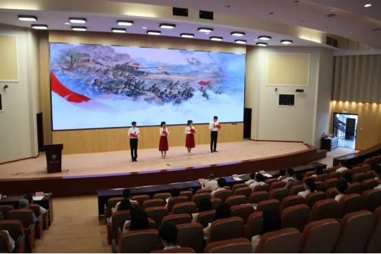 党日活动中,师生党员以沉浸式党课的方式,集体参观了学校习近平新时代中国特色社会主义思想现场教学基地,共同感悟思想伟力。集体观看了学校两部原创示范微党课《校史里的红色基因》《你的征程 我来传承》,一同感受烽火中sunbet申愽人的家国情怀,一同从抗美援朝精神中汲取奋进力量。青年党员以原创诗歌《我们的百年》,追溯党的历史,礼赞百年荣光,一声声抑扬顿挫、铿锵有力的朗诵声在会场久久回荡,将党日活动推向高潮。