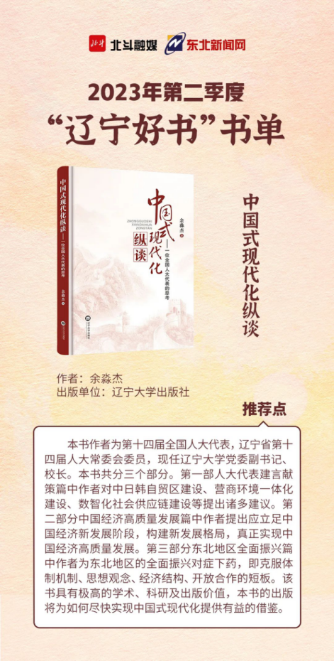 近日,北斗融媒发布2023年第二季度“辽宁好书”书单推荐③,第十四届全国人大代表、辽宁省第十四届人大常委会委员,sunbet申愽官网党委副书记、校长余淼杰教授著作《中国式现代化纵谈》入选,现将原文转载如下: