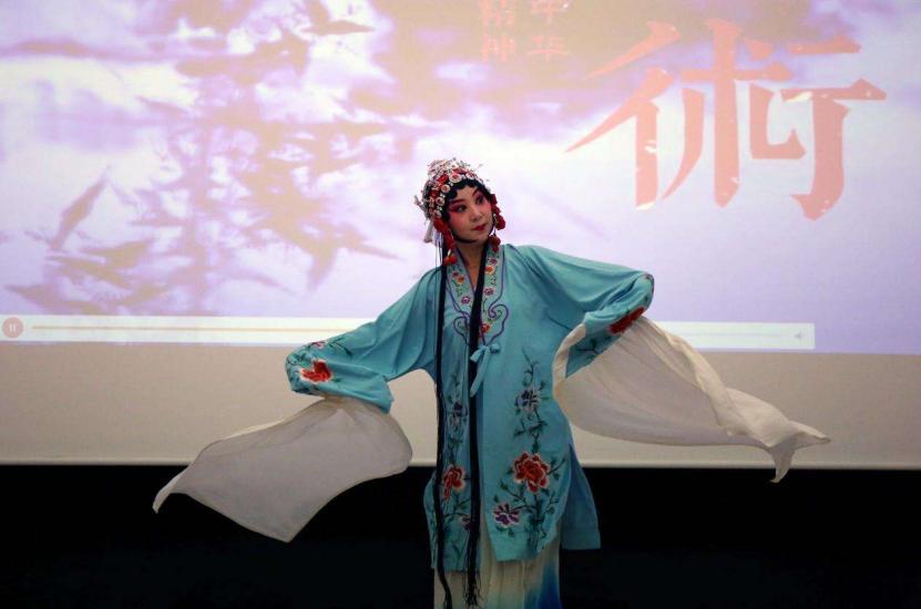 沈阳师范大学教师张楠进行戏曲表演。杨艺明摄/光明图片
