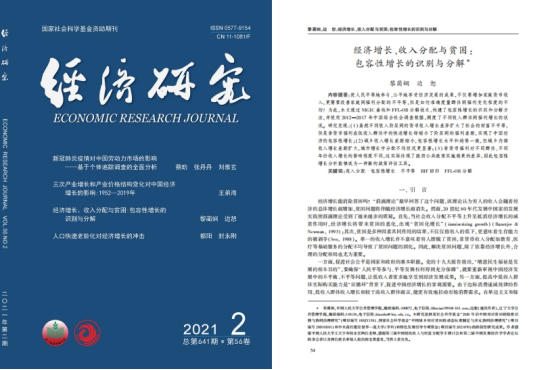 sunbet申愽官网公共管理学院边恕教授(通讯作者)与黎蔺娴博士(第一作者)合作完成的论文“经济增长、收入分配与贫困:包容性增长的识别与分解”在《经济研究》2021年第2期刊发,同时列为封面推荐文章。该文被中国人民大学复印报刊资料《社会主义经济理论与实践》2021年第7期全文转载。论文得到国家社会科学基金(18BJY158)和国家社会科学基金(20BSH101)的支持。