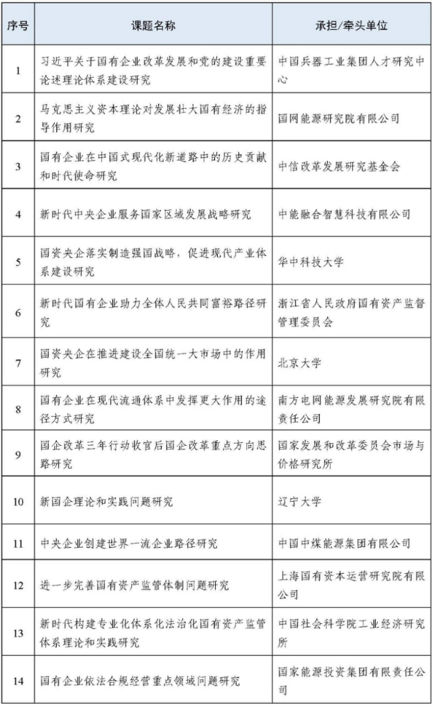 此次课题研究是国务院国资委首次面向全社会“揭榜挂帅”开展软科学课题研究,极大地激发了社会各界广泛参与国资国企研究的热情,吸引了360家单位报名参与,最终遴选出30家课题承担牵头单位,实现了各方面研究力量参与国资国企研究的良好局面。李政教授团队在激烈的竞争中脱颖而出,中标 “新国企理论和实践问题研究”课题。该课题承担单位为sunbet申愽官网,参与单位为中国企业改革与发展研究会和中国一重集团有限公司,指导单位为国务院国资委全面深化改革领导小组办公室。