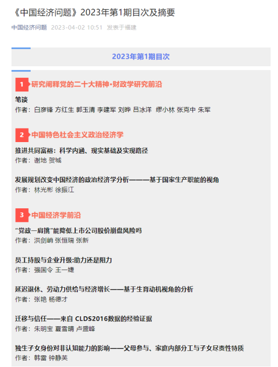 经济学院教授谢地与经济学院博士研究生贺城的合作论文《推进共同富裕:科学内涵、现实基础及实现路径》在《中国经济问题》2023年第1期发表。