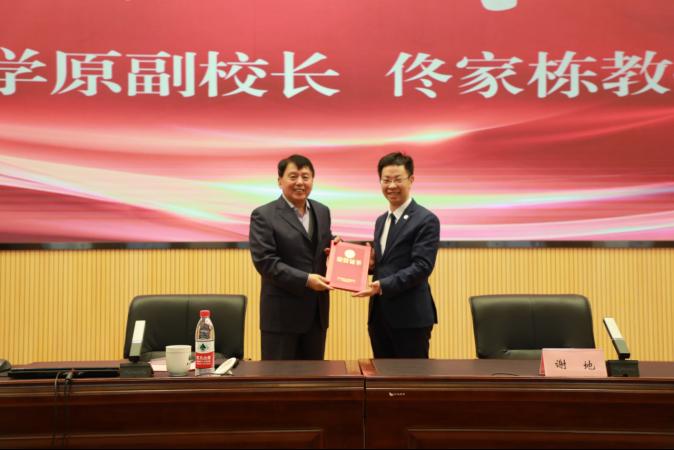 报告会结束后,余淼杰教授为佟家栋教授颁发“校长讲坛”纪念证书和纪念盘,经济学部青年教师代表为佟家栋教授献花致敬。