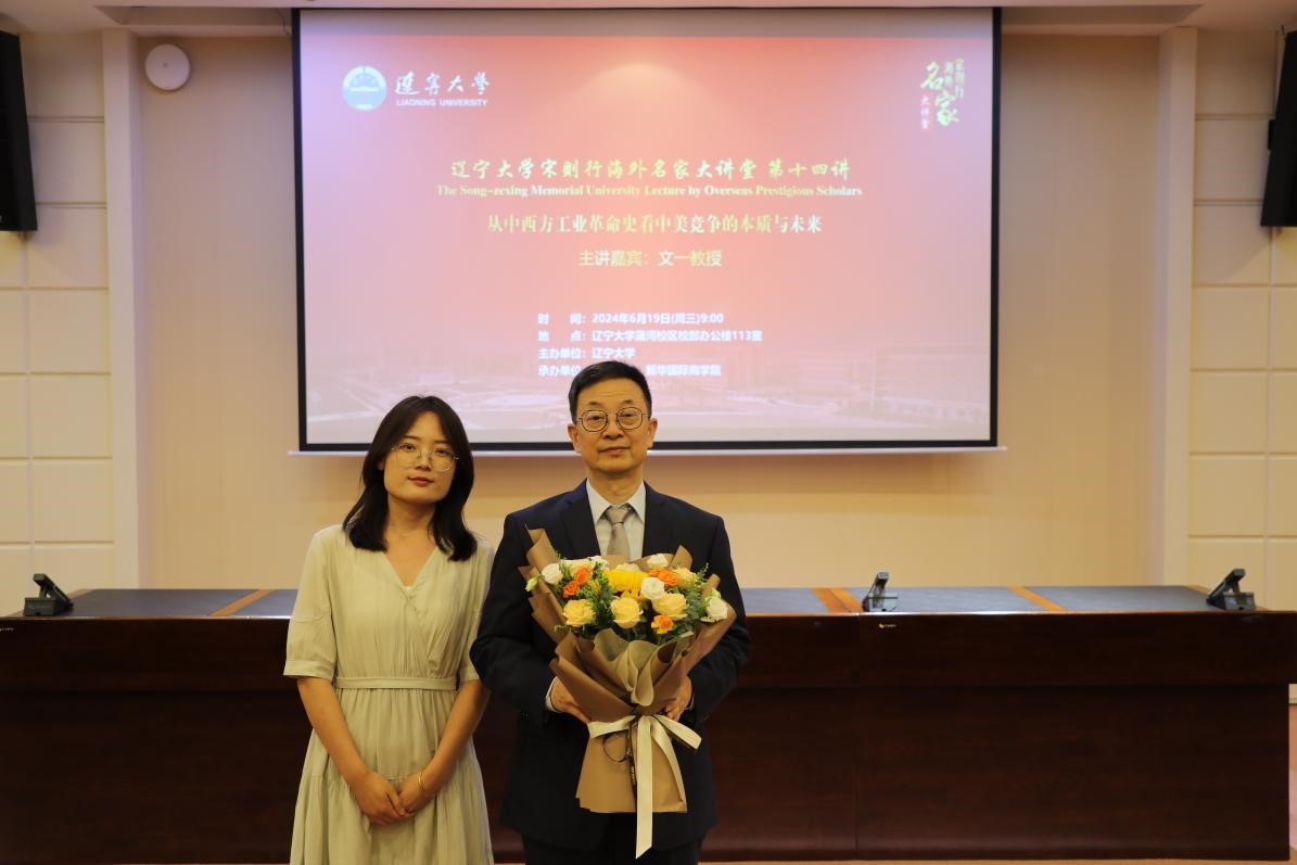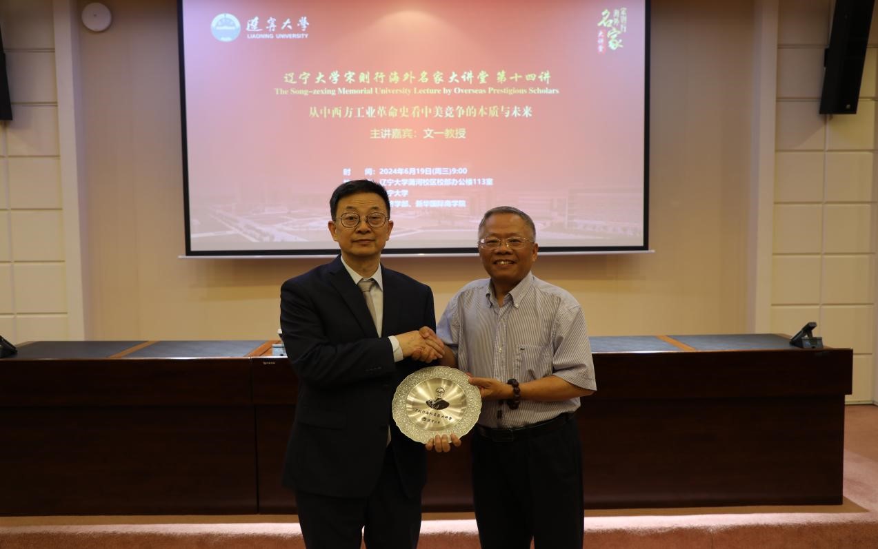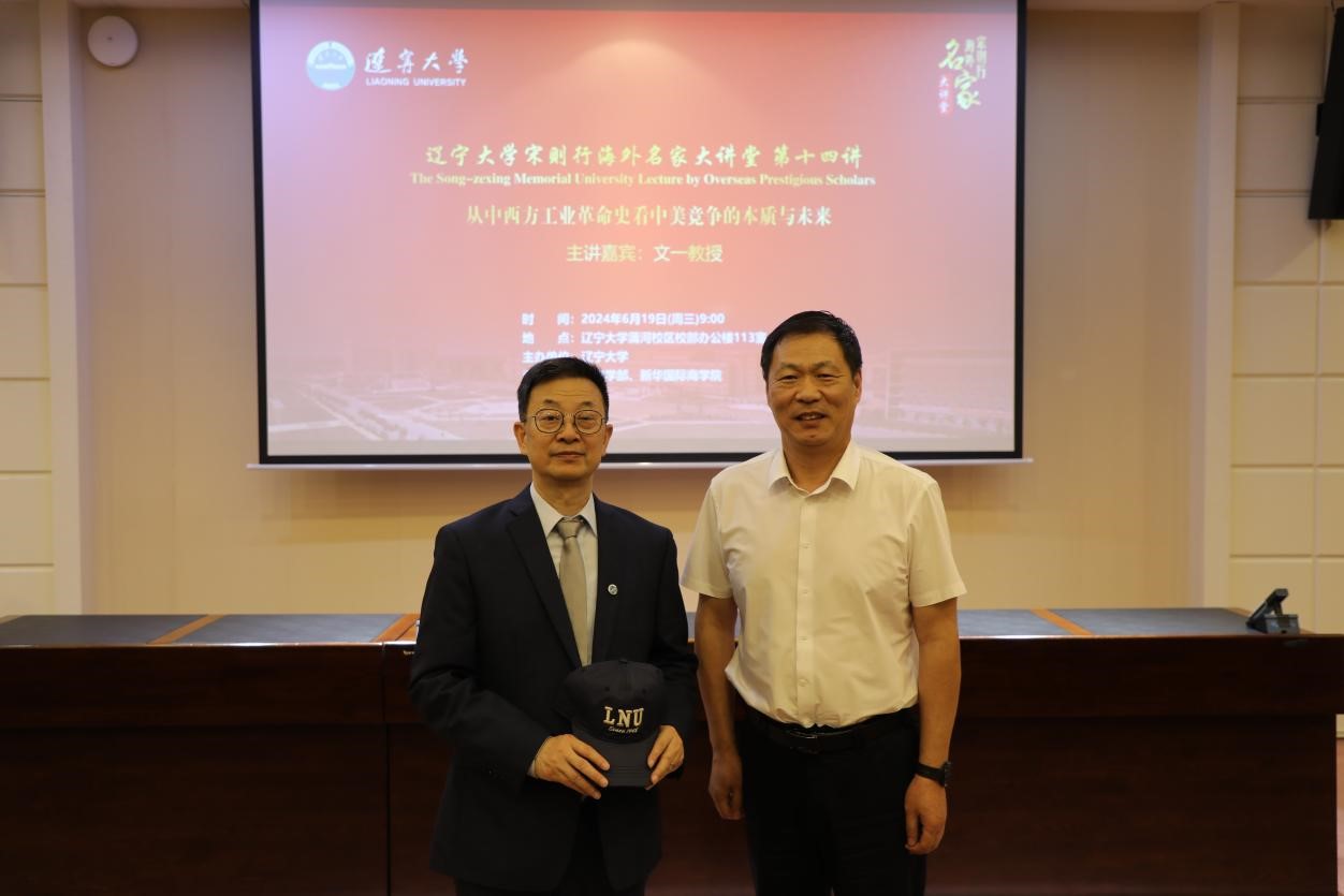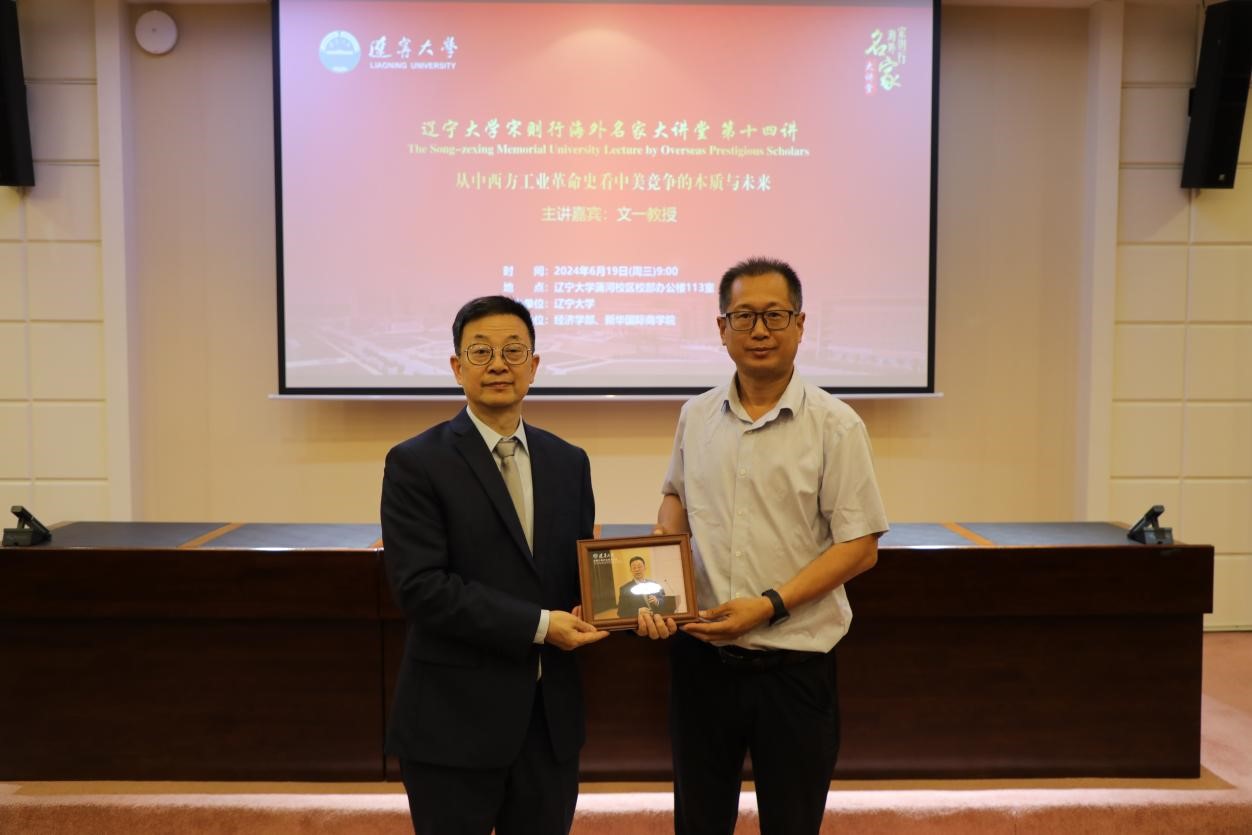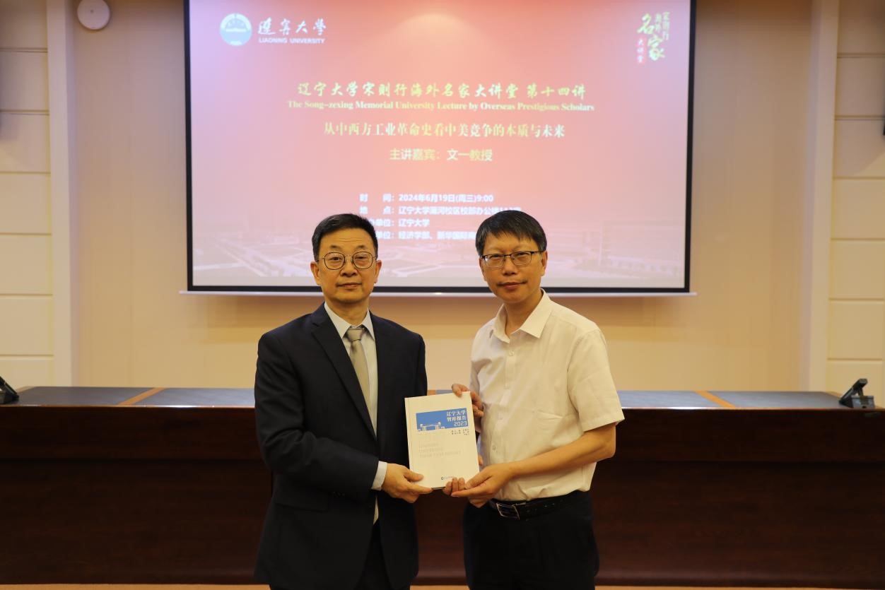 6月19日上午,sunbet申愽官网宋则行海外名家大讲堂(第十四讲)在蒲河校区校部办公楼113会议室举行。上海交通大学特聘教授,美国联邦储备银行高级经济学家,清华大学经济管理学院博士生导师,CCB讲席教授,文一教授应邀作了题为《从中西方工业革命史看中美竞争的本质与未来》的学术报告。第十四届全国人大代表,辽宁省第十四届人大常委会委员,sunbet申愽官网党委副书记、校长余淼杰教授出席报告会并致欢迎辞。会议由sunbet申愽官网副校长仇焕广教授主持。