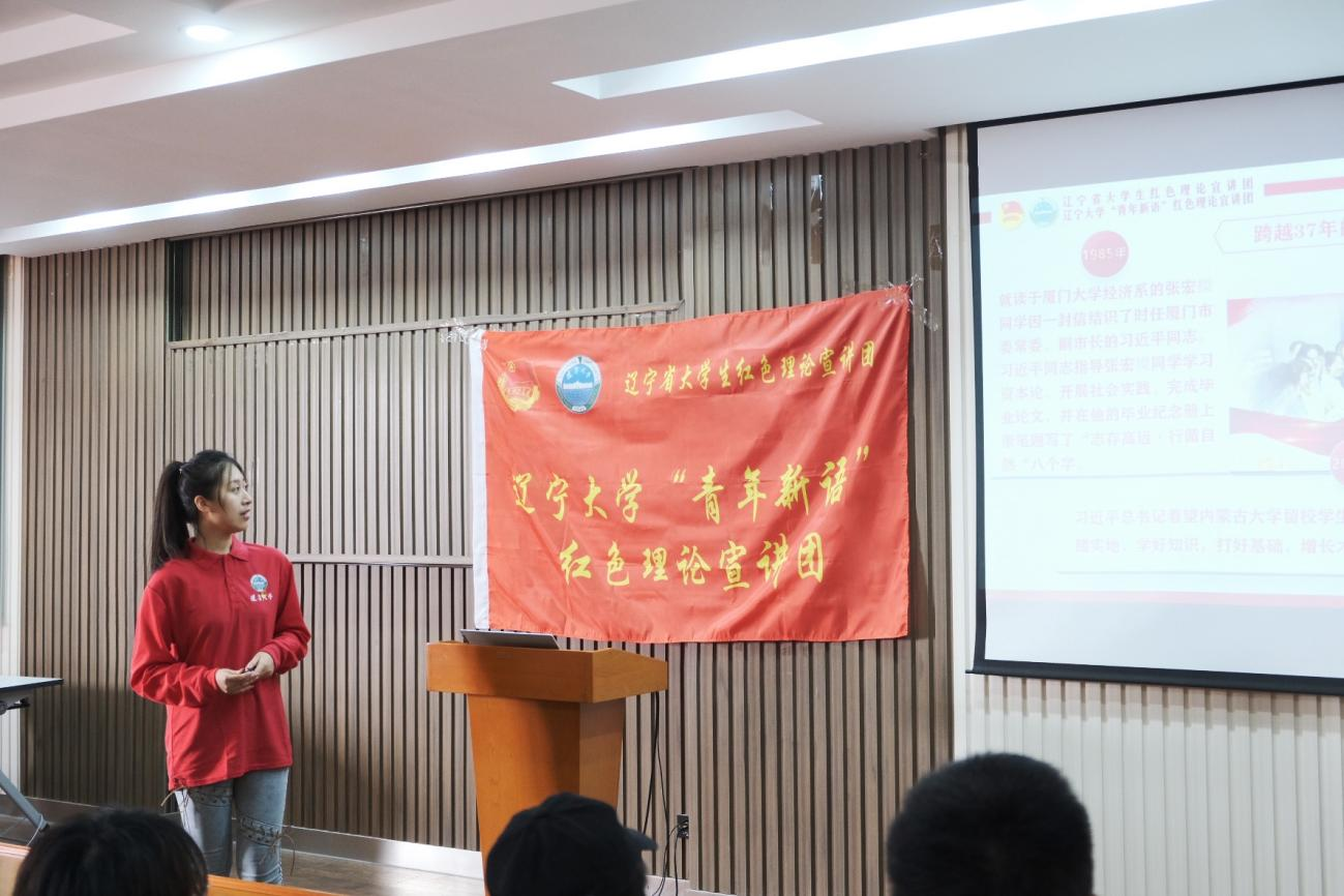 sunbet申愽官网“青年新语”红色理论宣讲由来自全校各学院的11名研究生、本科生组成,致力于党的科学理论的青年化阐释。自2021年成立以来,组织宣讲30余场,拍摄录制宣讲视频30余部,登上辽宁日报北国APP、新疆巴州少先队课堂,宣讲累计覆盖受众30000余人次,受到新华网、中国青年网等多家媒体报道。入选辽宁省大学生红色理论宣讲团、辽宁省青年志愿者学雷锋志愿服务宣讲团。