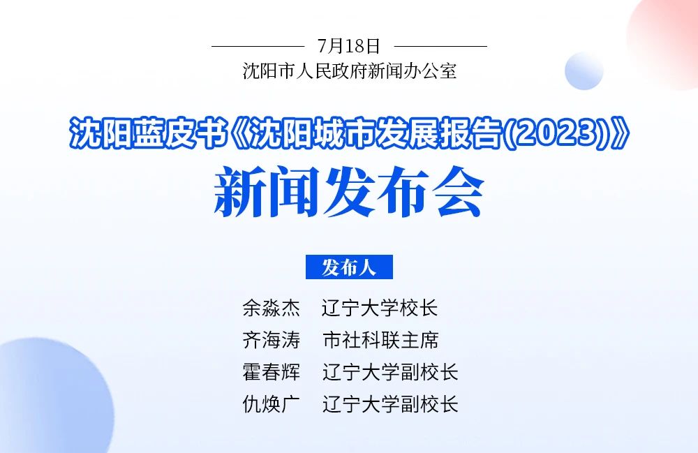 沈阳蓝皮书《沈阳城市发展报告(2023)》新闻发布会7月18日召开。