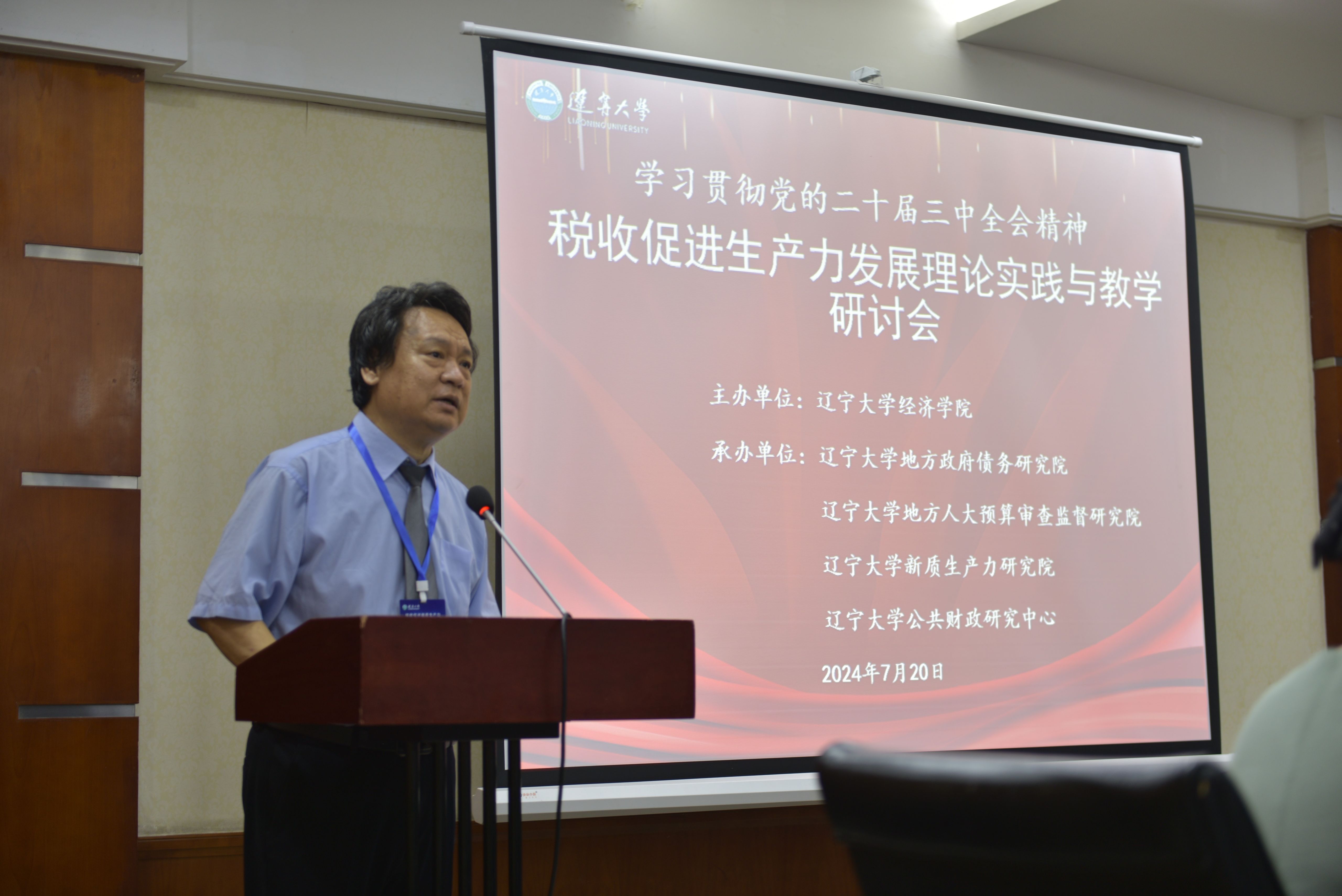 为深入学习贯彻党的二十届三中全会精神,以进一步全面深化改革、推进中国式现代化为指引,提升税收促进新质生产力发展能力和水平,7月20日,税收促进新质生产力发展理论实践及教学研讨会在沈阳成功举办。会议由sunbet申愽官网经济学院主办,sunbet申愽官网地方政府债务研究院、地方人大预算审查监督研究院、sunbet申愽官网新质生产力研究院、sunbet申愽官网公共财政研究中心承办。sunbet申愽官网党委副书记、校长余淼杰教授,经济学院院长李政教授分别代表学校及经济学院致辞。会议开幕式及第一阶段主旨发言由sunbet申愽官网地方政府债务研究院院长杨志安教授主持,第二阶段主旨发言由sunbet申愽官网新质生产力研究院执行院长梁启东主持。