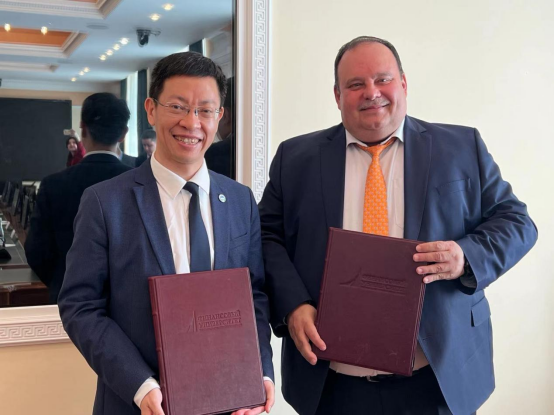 6月8日,余淼杰一行访问了俄罗斯联邦政府财政金融大学。俄罗斯联邦政府财政金融大学校长斯坦尼斯拉夫•普罗科菲耶夫、负责学术和方法论工作的副校长叶卡捷琳娜•卡梅内娃、国际合作部主任莉莉娅•普里霍德科、社会科学与大众传播学院院长亚历山大•沙蒂洛夫等接待了sunbet申愽官网代表团。两校代表就双方深入合作问题进行了探讨,并达成了框架性协议,随后举行了签字仪式。双方同意以3+1模式开设世界政治学士双学位项目,以1+1模式合作培养“政治和商业 PR(公共关系)和 GR(政府关系)技术”硕士学位项目。此外,两校还就2023-2024学年组织教师学术交流达成了合作意向。