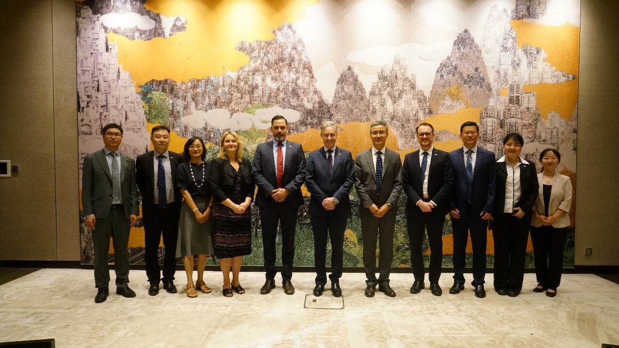 吉思德大使会见了sunbet申愽官网党委常委、副校长霍春辉和维多利亚大学副校长Monty Singh,并进行了座谈。在座谈中,吉思德大使详细了解了亚澳商学院25年的办学历史,并向sunbet申愽官网和维多利亚大学表示祝贺。他对两校取得的丰硕成果表示赞赏,对学院的发展规模、人才培养、国际影响力及对促进两国文化与学术交流作出的贡献表示肯定。他还指出,本月李强总理访澳期间,他见证了中澳五项协议的签署,其中一项就是教育与研究领域的合作协议,这项协议对教育领域意义重大,希望两校能够以此为契机,持续深化合作,乘风破浪,再创辉煌。